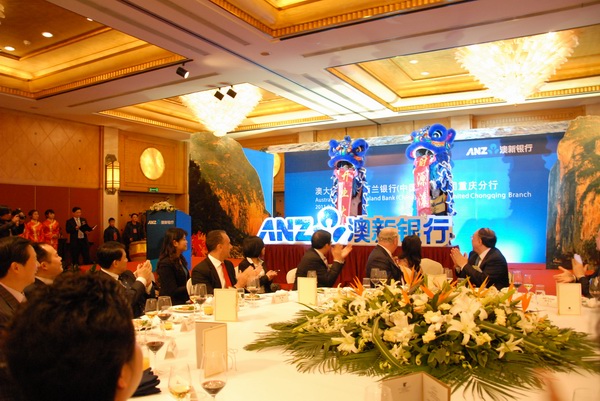 澳新银行重庆分行于2011年3月24日在重庆万豪酒店举行了盛大的开业仪式。市长黄其帆、副市长凌月明、澳大利亚和新西兰银行集团全球总裁邵明高先生出席了开业盛典。