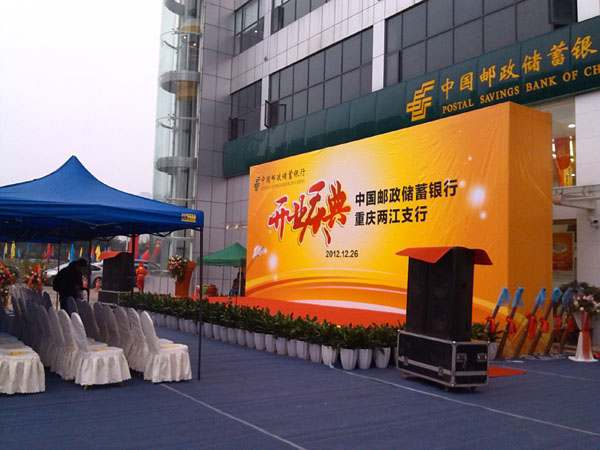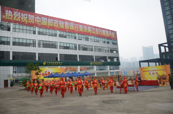 2012年12月26日上午11时18分邮储银行重庆市分行两江新区支行开业开业庆典仪式在在两江新区核心财富中心隆重举行,本次开业庆典由重庆神笔广告公司策划实施,邮储银行重庆市分行、重庆市银监局、重庆市金融办公室等相关部门领导亲临现场指导和祝贺。庆典仪式在震撼的威风锣鼓中拉开序幕,两只欢腾的舞狮也给支行的成立吐出祝贺的条幅,市分行的领导和银监领导分别给支行授牌,开业剪裁仪式十二响电子礼炮齐发将开业庆典推向高潮,祝愿邮储银行两江支行业务蒸蒸日上。