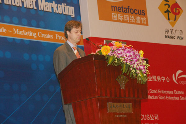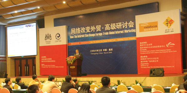 3月14日,在重庆市外经贸委、市中小企业局和英国驻重庆总领事馆的支持下,重庆神笔广告营销公司携手英国Metafocus公司在重庆金源大饭店宴会厅圆满成功地举行了“网络改变外贸,营销创造财富”高级研讨会。