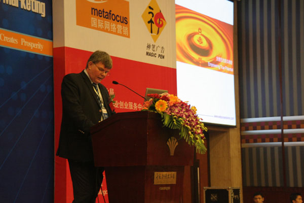 会议以英国驻重庆总领事Nick Whittingham先生的发言拉开序幕,随后重庆神笔广告营销公司总经理及英国Metafocus公司总裁等专家纷纷就重庆网络营销、SEO、SEM进行了专题演讲。另《世界是平的》一书作者,美国纽约时报著名记者Thomas Friedman先生,也通过助手Gwenn Gorman先生发来贺电,祝贺本次研讨会的圆满成功。