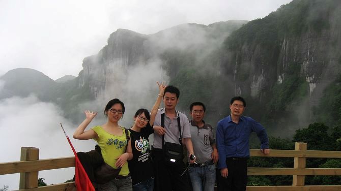 6月19日下午4:30分,我们的拓展队伍从重庆出发,全队共十人,由周总任领队,陈总任副领队,工程部唐经理任旗手,财务处熊经理任后勤组组长,经过两小时车程,顺利到达南川金佛山西坡脚。